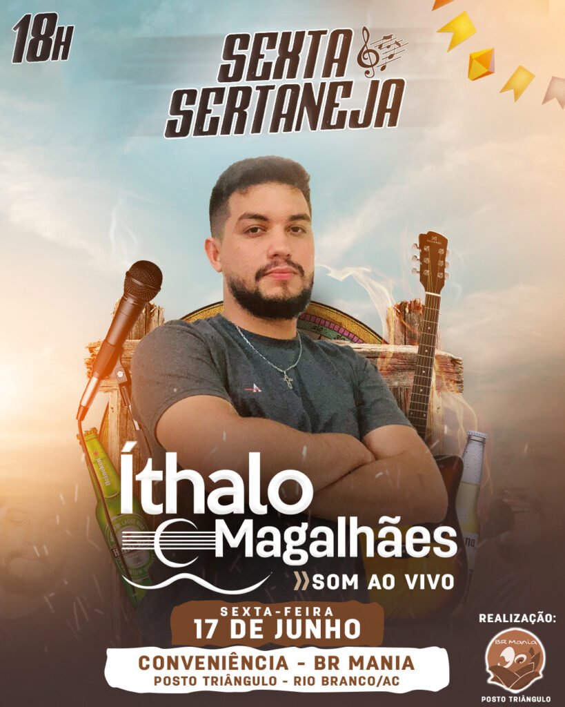 Uma das grandes revelações do sertanejo universitário da região, o cantor Íthalo Magalhães se apresenta nesta sexta-feira na cidade de Rio Branco-AC.