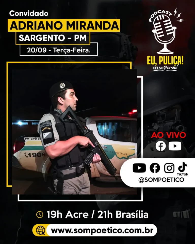 PODCAST: EU, PULIÇA! #016 CONVIDADO:  ADRIANO MIRANDA – (SGT – PM) DATA: 20/09/2022 – TERÇA-FEIRA