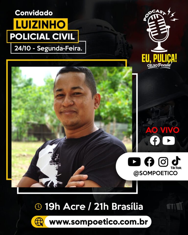 PODCAST: EU, PULIÇA! #017 CONVIDADO:  LUIZINHO (Policial Civil) DATA: 24/10/2022 – SEGUNDA-FEIRA –  ÁS 19