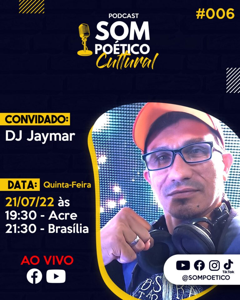 PODCAST:  SOM POÉTICO CULTURAL #006 CONVIDADO: DJ JAYMAR https://www.instagram.com/djjaymar/ DATA: 21/07/2022 – QUINTA-FEIRA –  ÁS