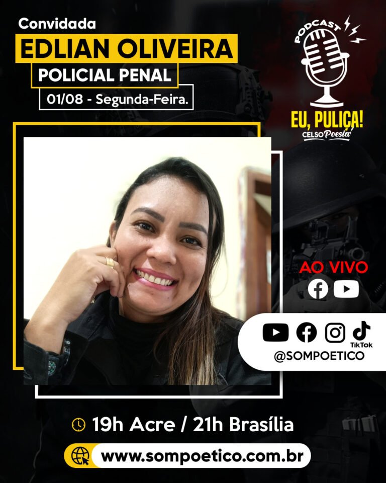 PODCAST: EU, PULIÇA! #013 CONVIDADA:  EDLIAN OLIVEIRA (Policial Penal) DATA: 01/08/2022 – SEGUNDA-FEIRA –  ÁS